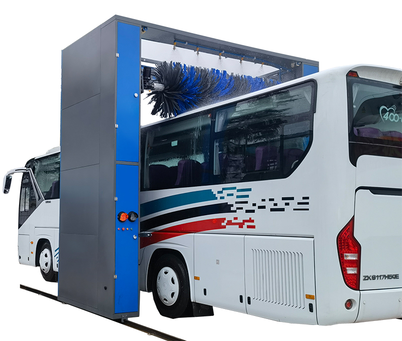 可以根據需要,選擇單程清洗或往復清洗功能,并可選擇清洗過程中是否使用頂刷清洗車頭、車尾或車頂。清洗后的水經過處理后循環使用。具有自動與手動控制功能并能選擇是否使用清洗劑清洗,同時具有多項安全保護功能。(雙刷結構,頂部由高壓水沖洗)