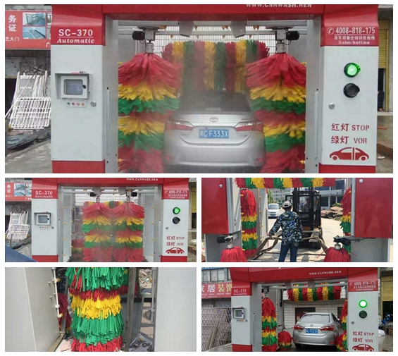電腦洗車機的洗車流程方式,當(dāng)車輛駛?cè)胼斔蜋C定位,由輸送機推桿推動車子的前輪前進,用于對各種轎車及中小型面包車的外表進行高壓沖洗、噴泡沫、刷洗車、打蠟、風(fēng)干等流程。