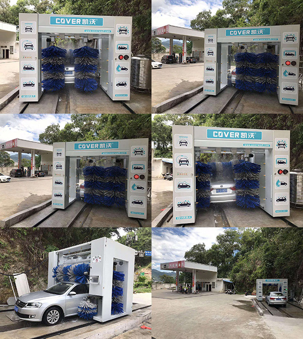 中國福建南平環城路鴻雁加油站安裝凱沃龍門5刷洗車機現場調試拍攝……